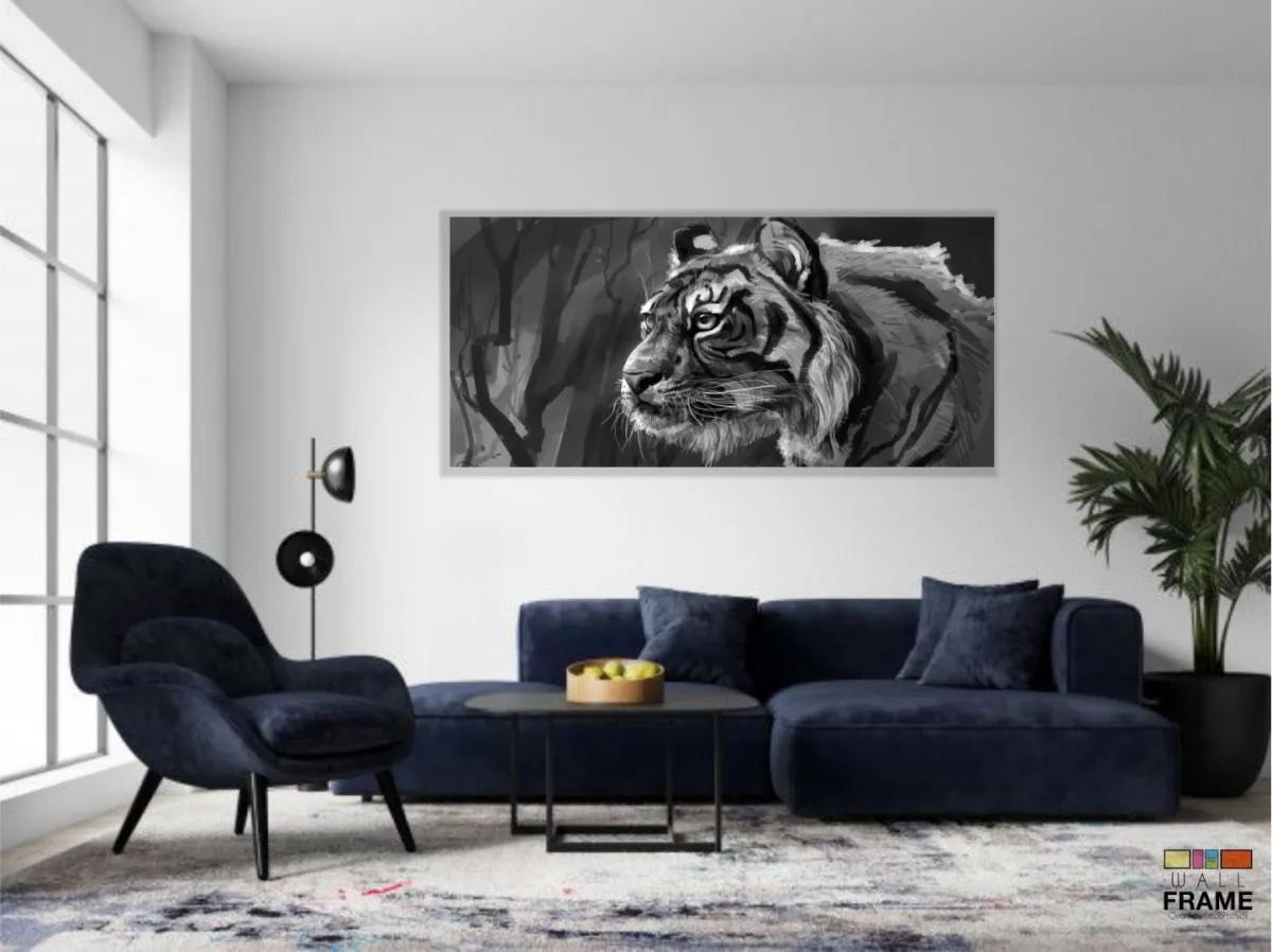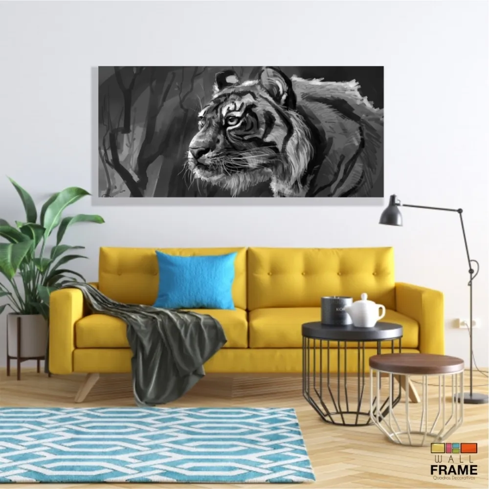 Quadro Decorativo Tigre Artístico Sala em Tecido Canvas 130x60