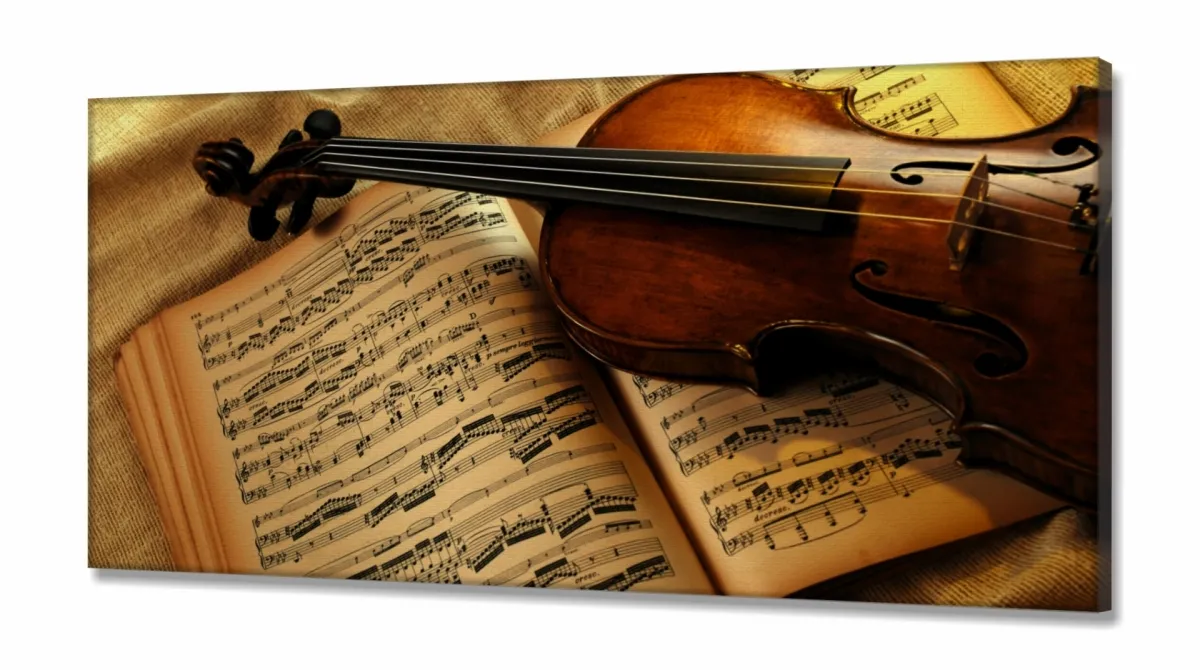Quadro Decorativo Violino Sala Mosaicoem Tecido Canvas 130x60
