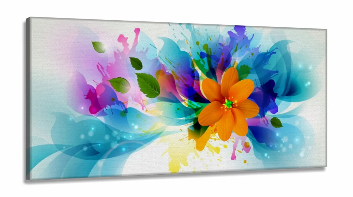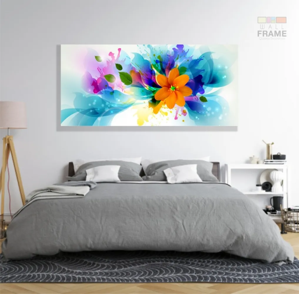 Quadro Flor Abstrata Sala Quarto Hall em Tecido Canvas 130x60