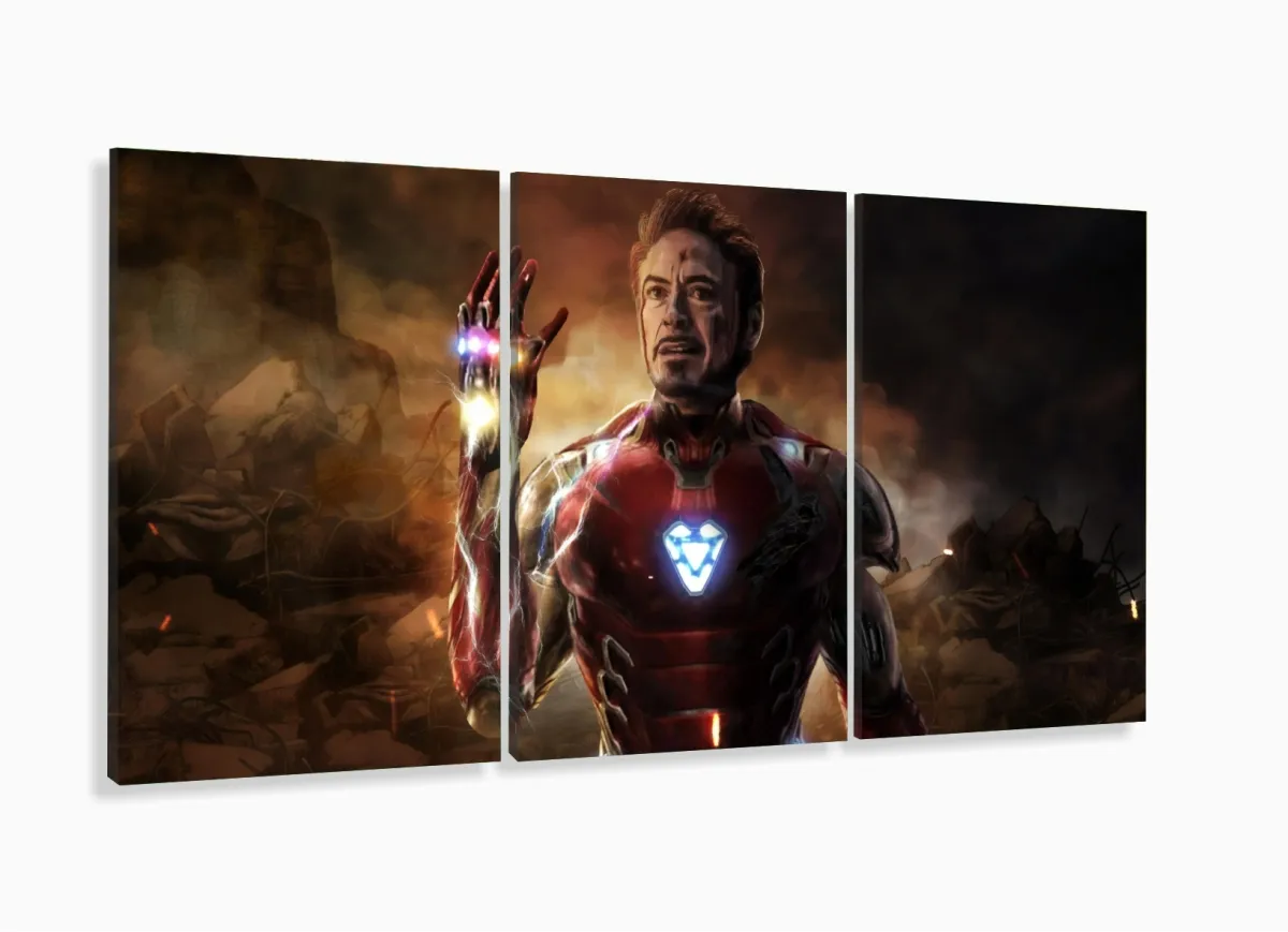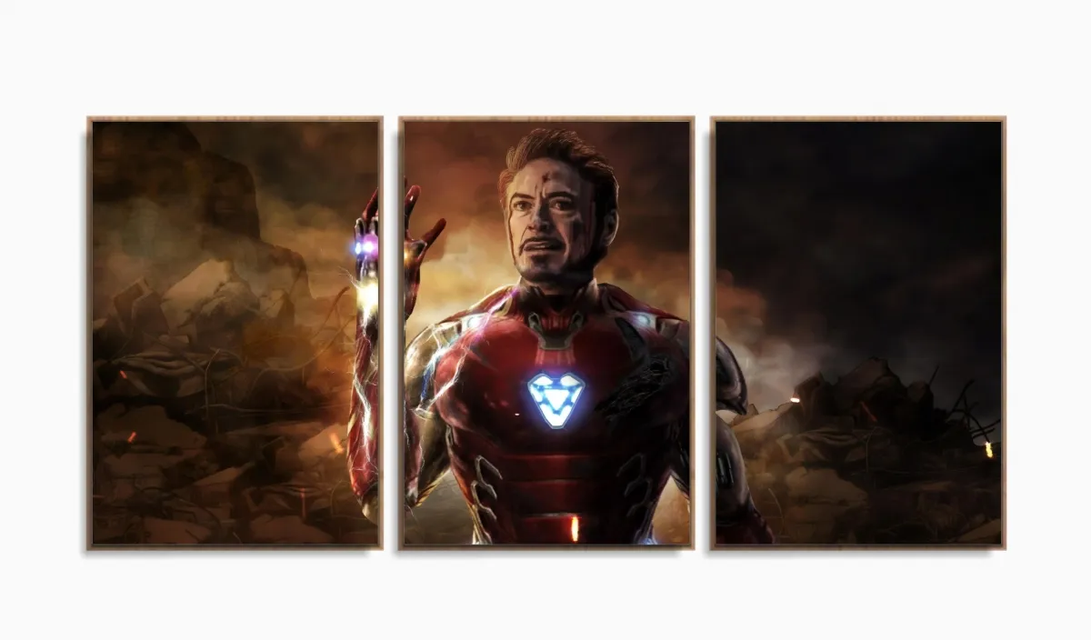 Quadro Homem de Ferro Para Quarto 120x60 3 peças Mosaico com moldura filete
