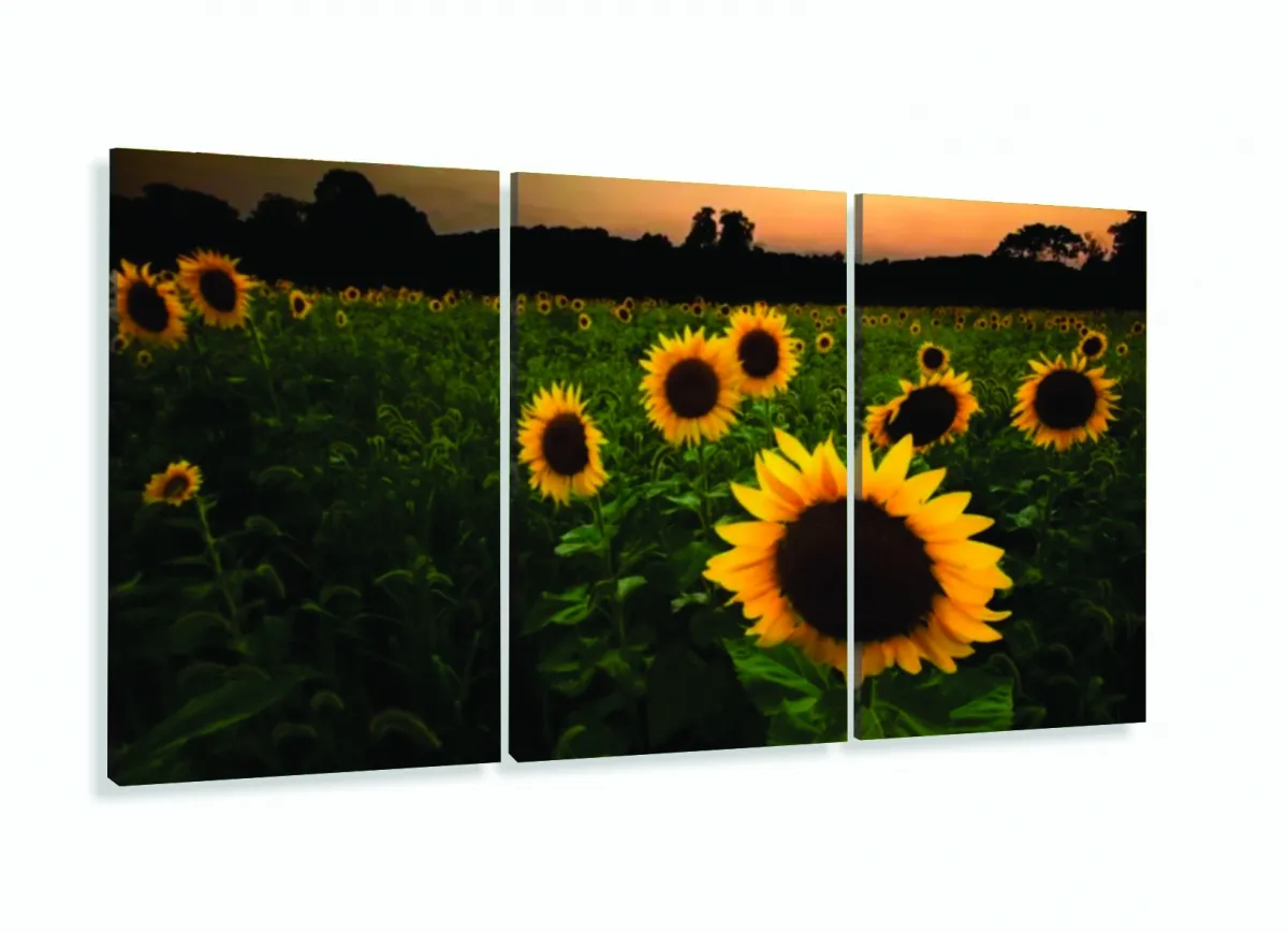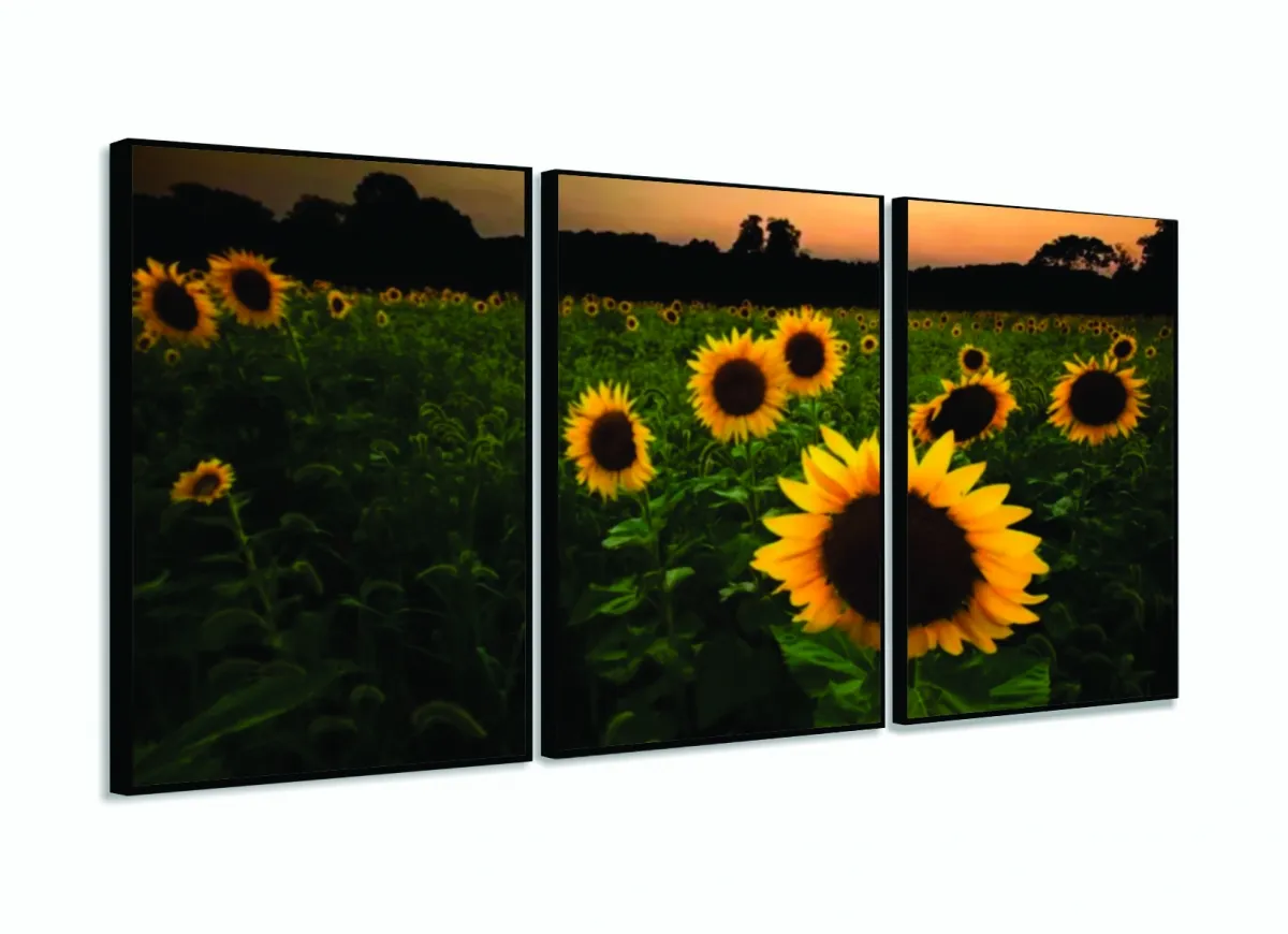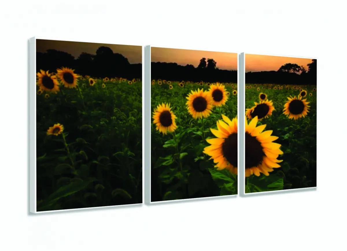 Quadro Decorativo Campo de Girasol 3 pçs 120x60 com moldura filete