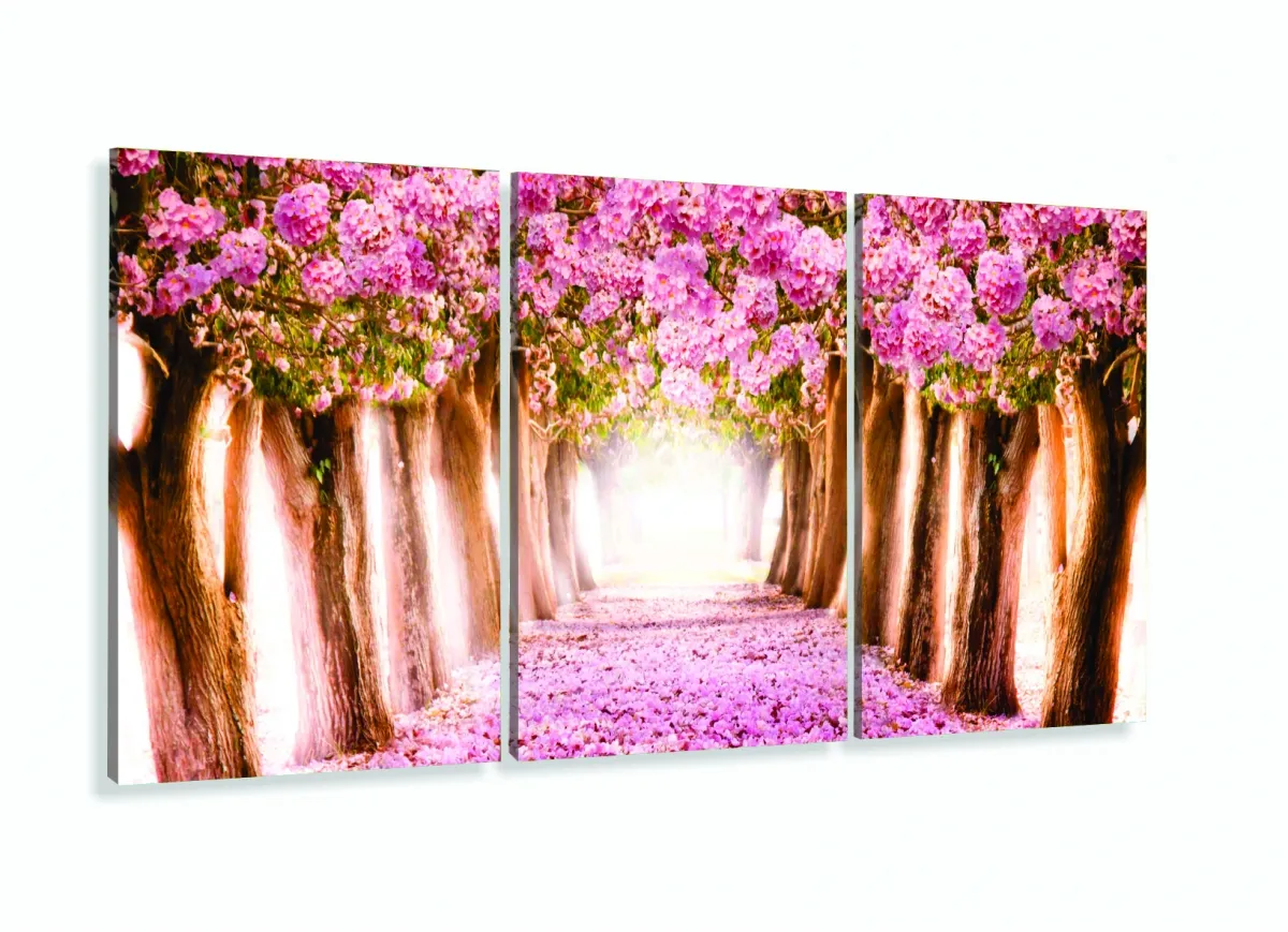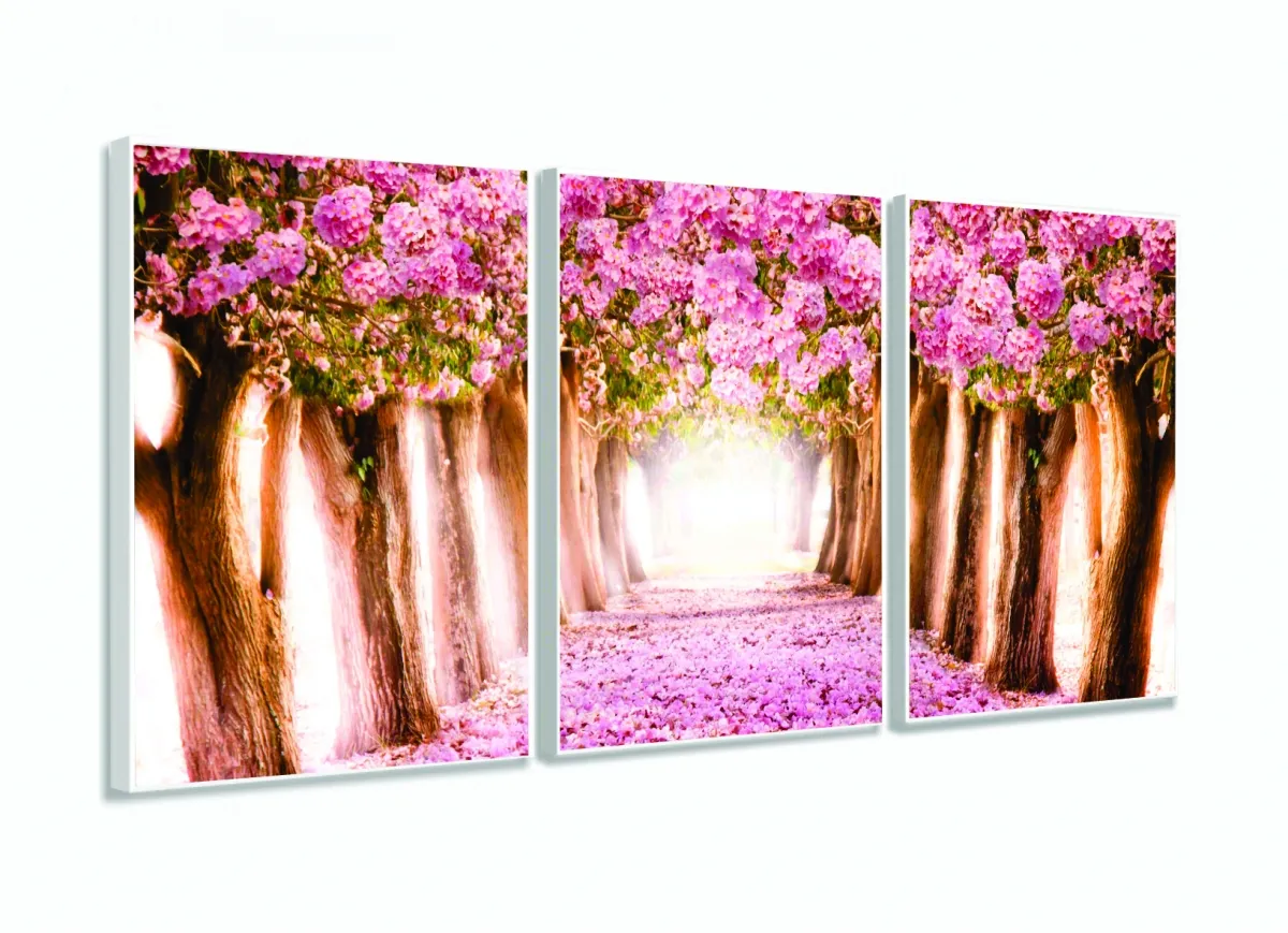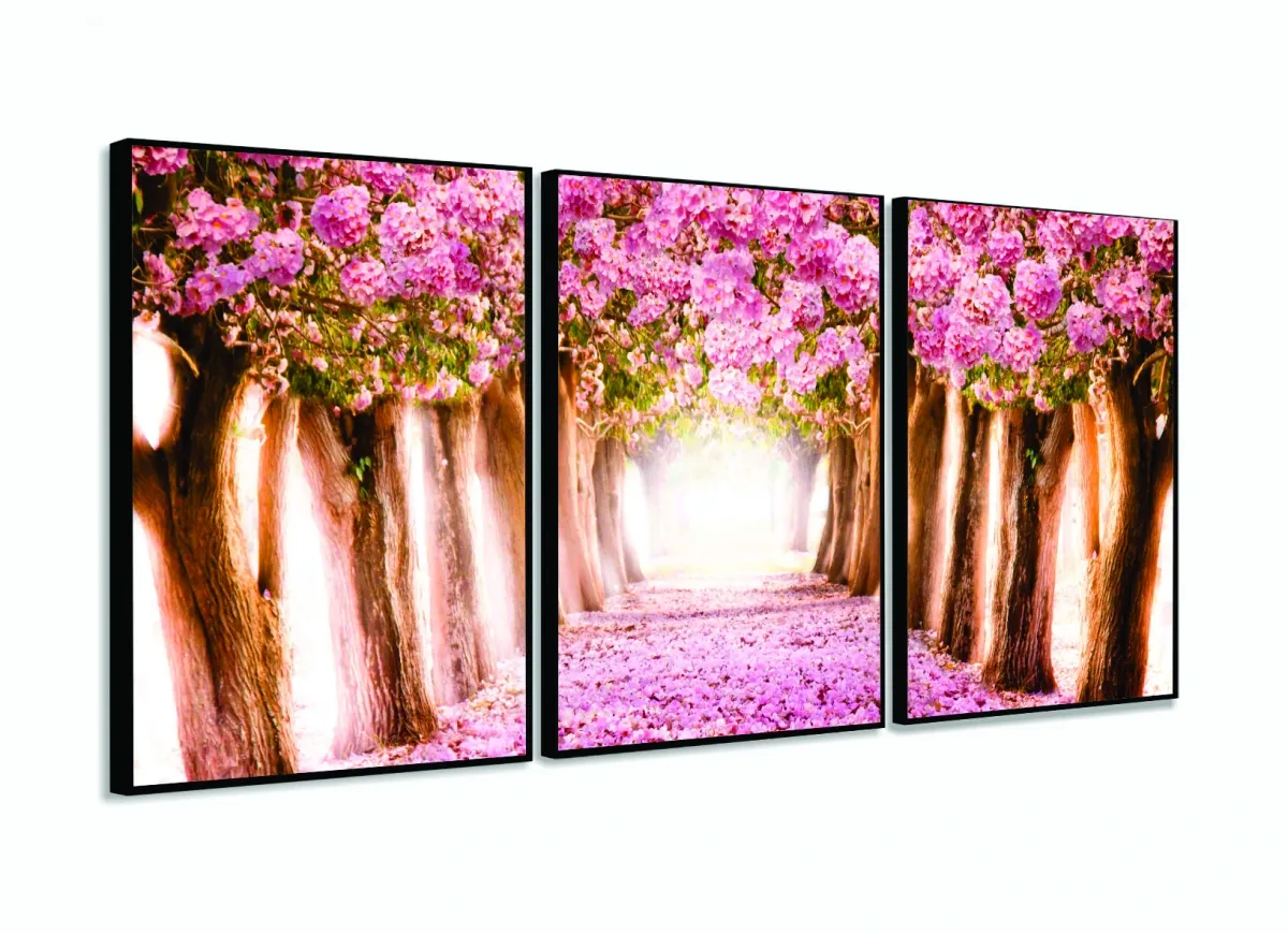Quadro Decorativo Sala Quarto Flores Cerejeiras 3 Telas com moldura filete