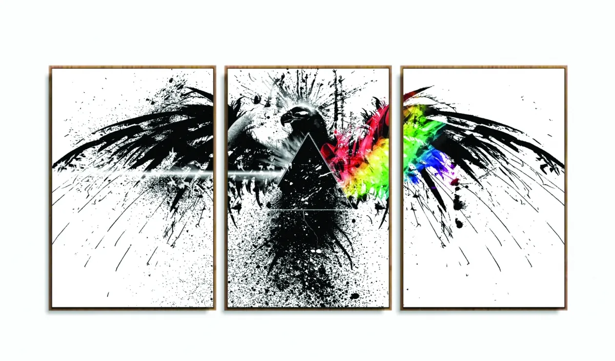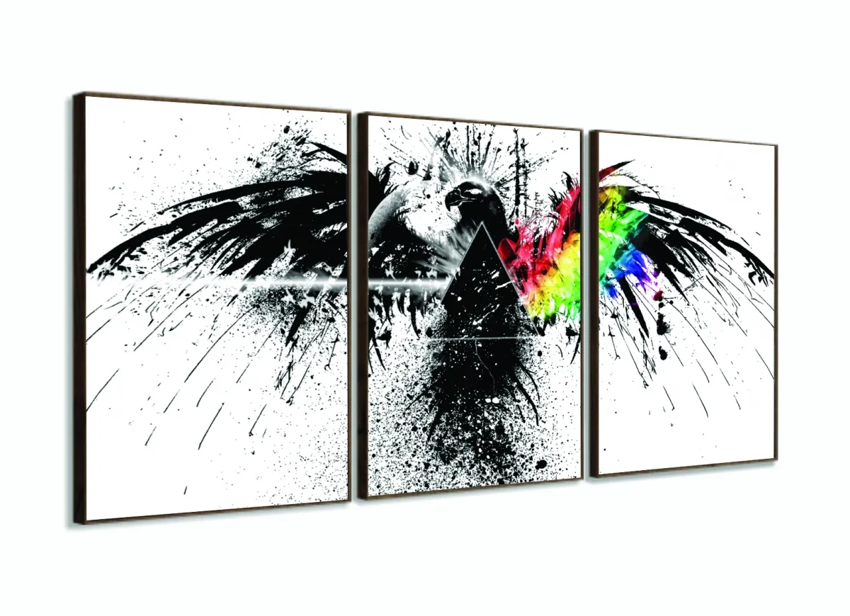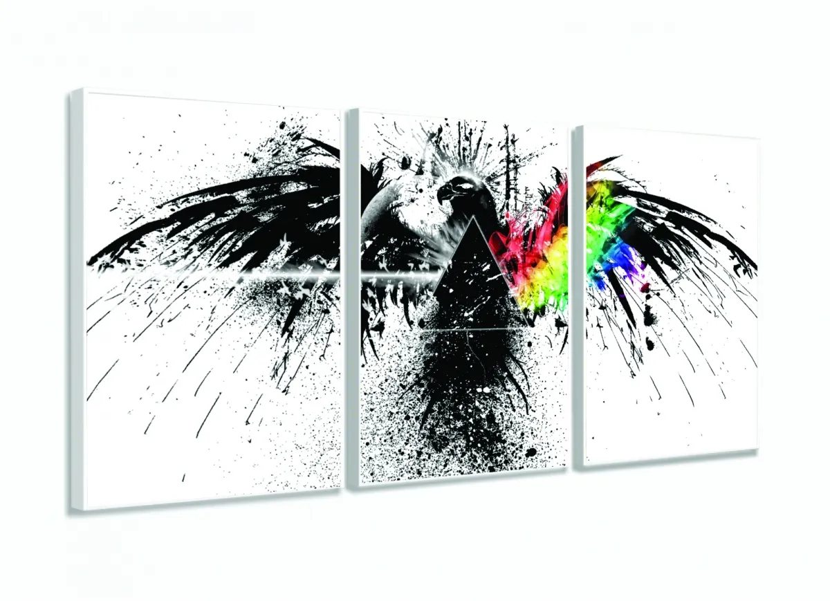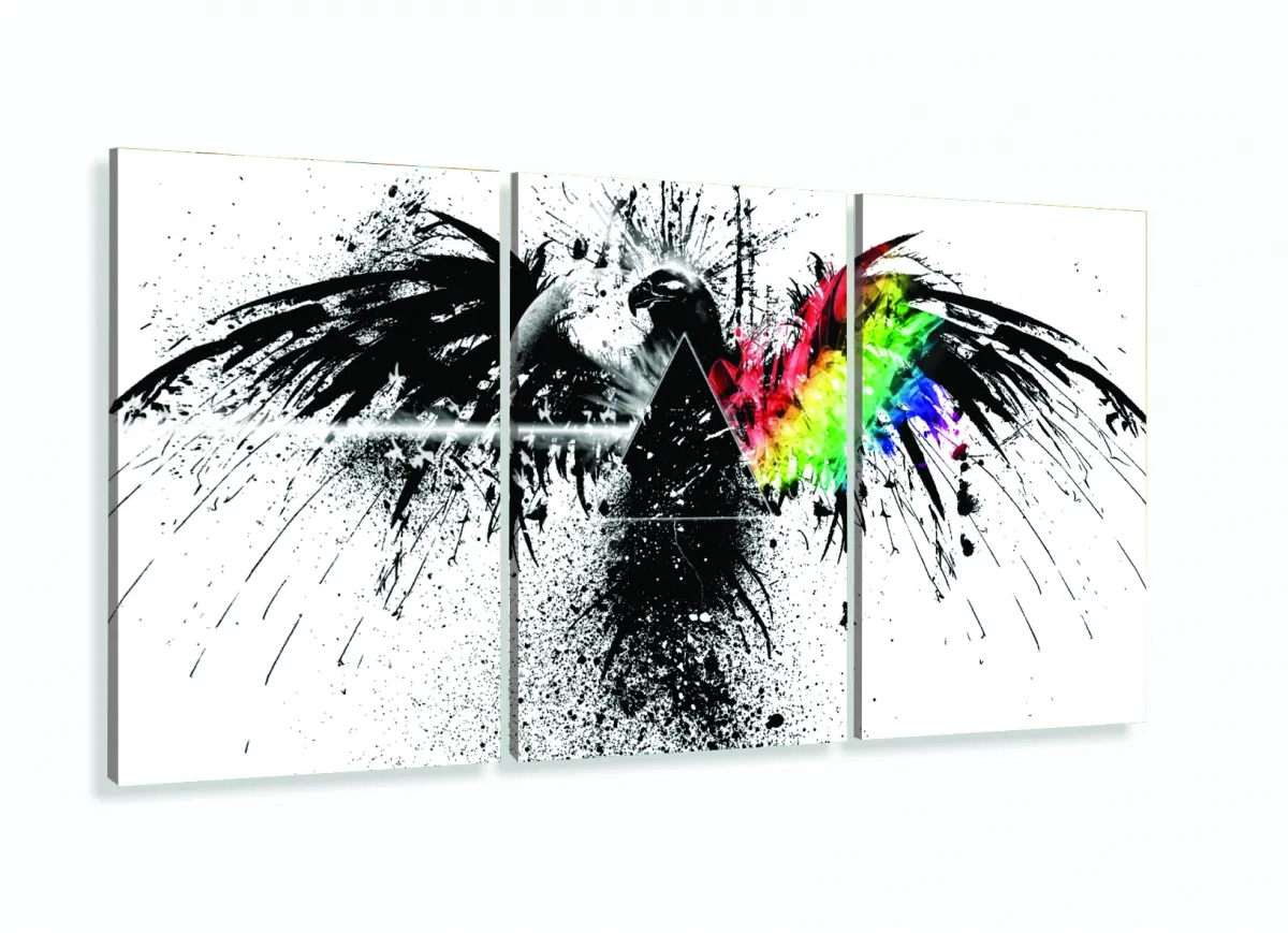 Quadro Pink Floyd Rock Dark Side Águia 3 Telas 120x60 com moldura filete