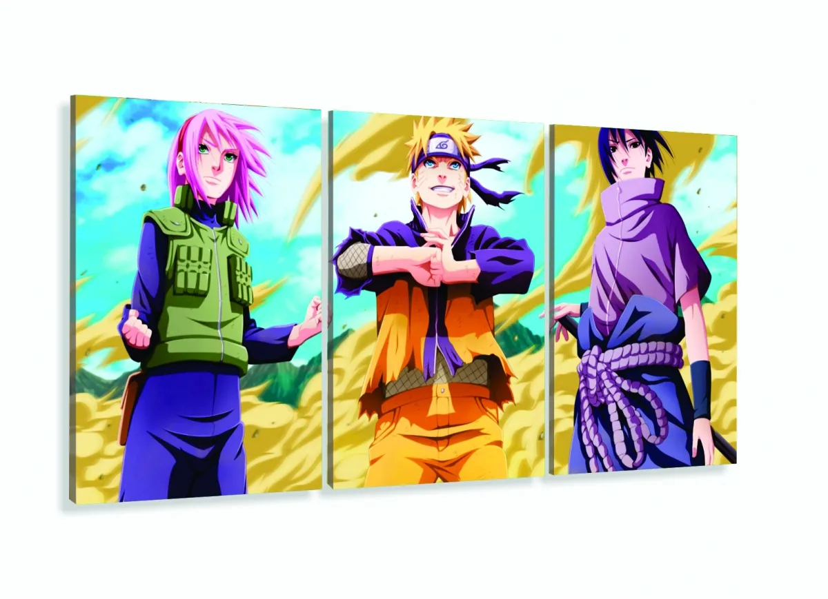Quadro Sakura Naruto Sasuke mosaico 3 peças 120x60 com moldura filete