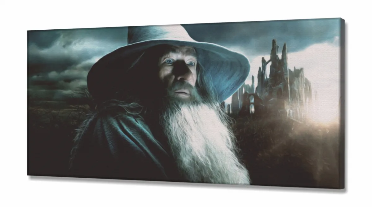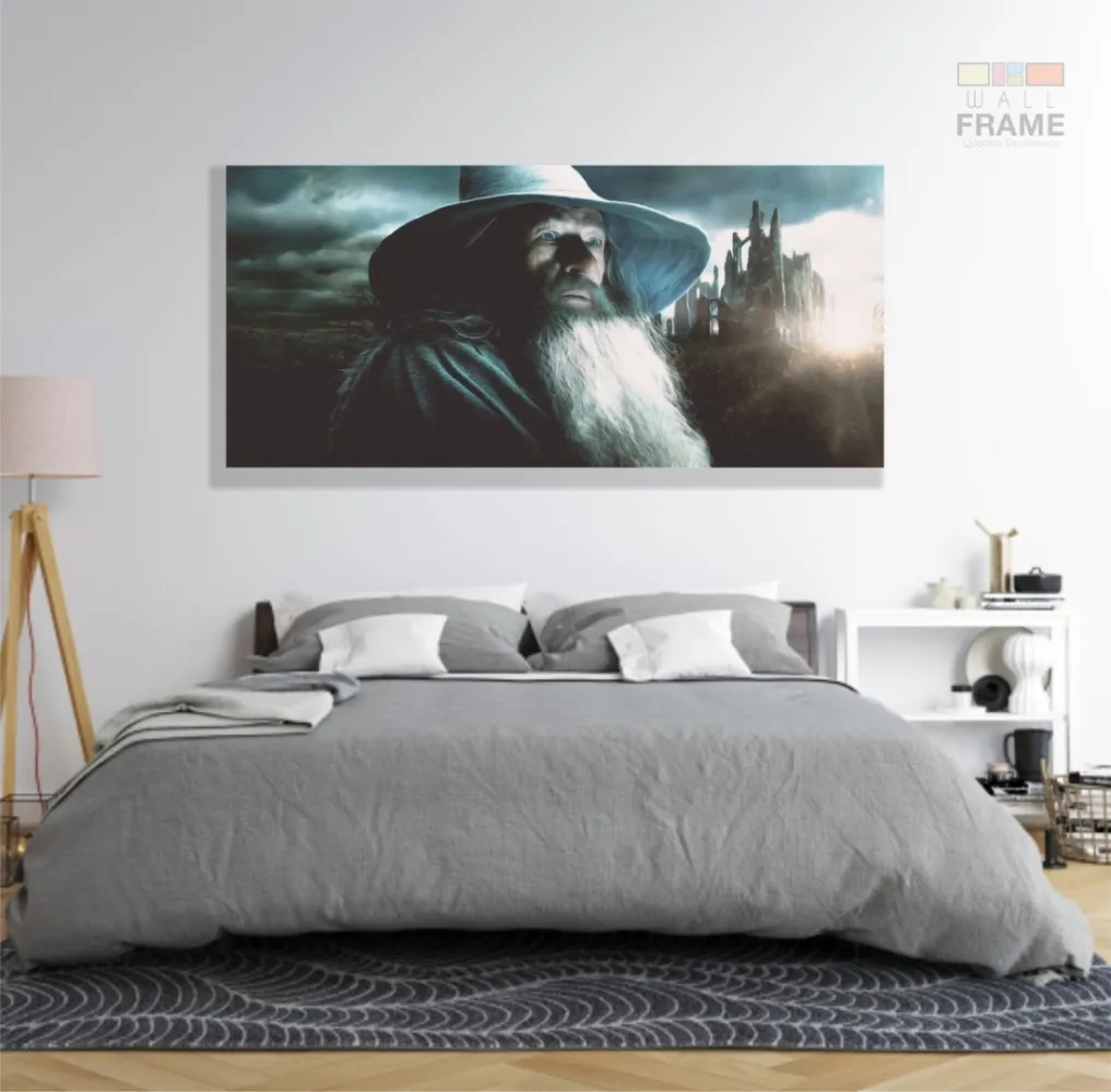 Quadro Senhor Dos Anéis Gandalf Hobbit Para Quarto em Tecido Canvas 130x60
