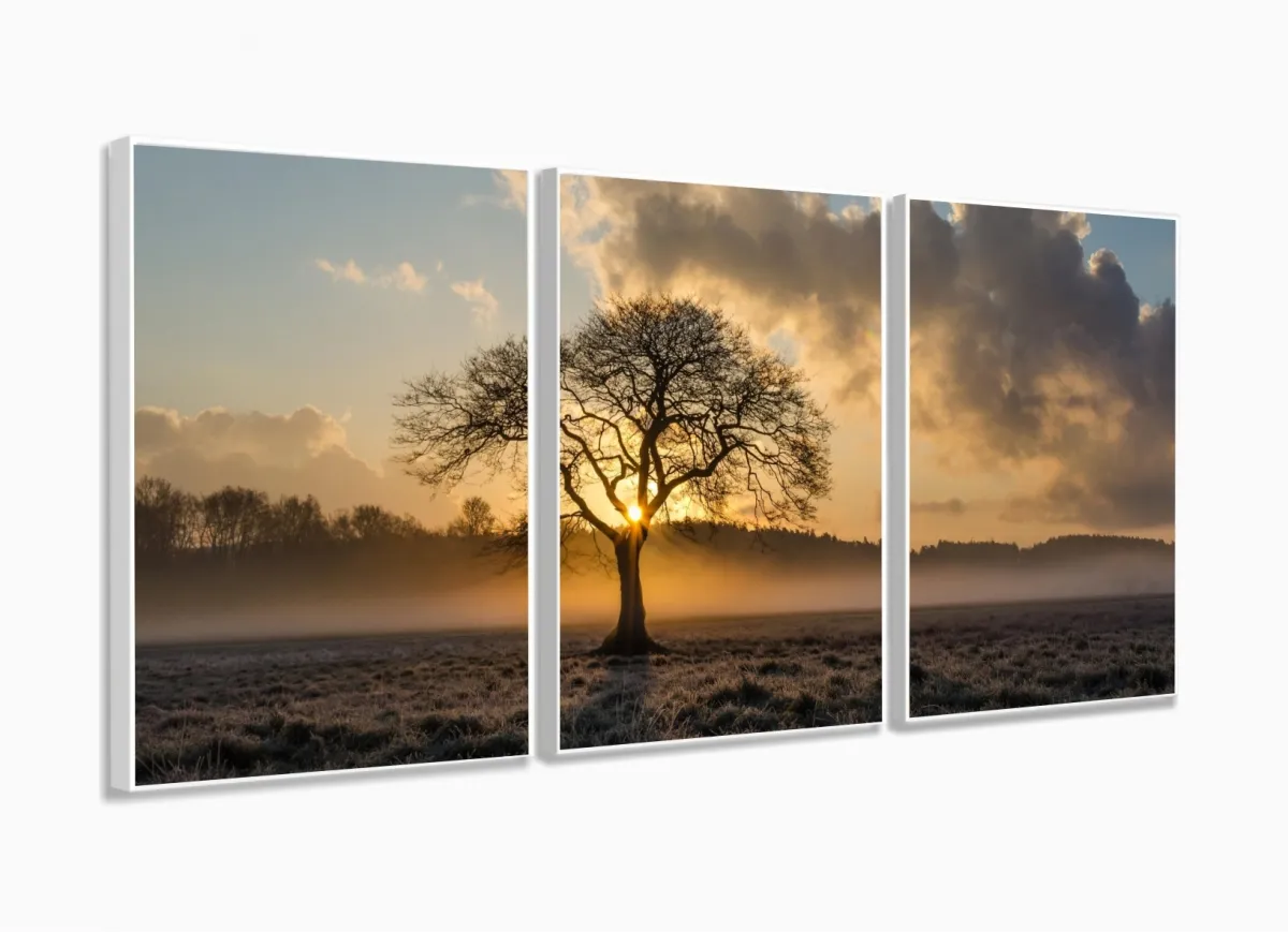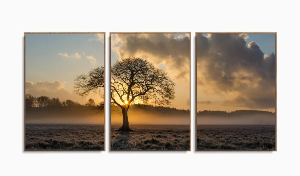 Quadros Decorativos Arvore Por Do Sol 60 x120tem Tecido com moldura filete