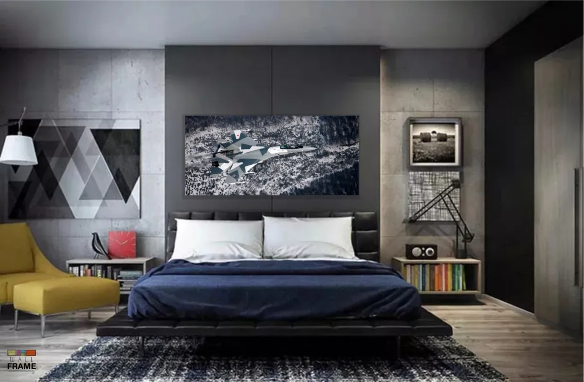 Quadros Decorativos Avião Caça em Tecido Canvas 130x60