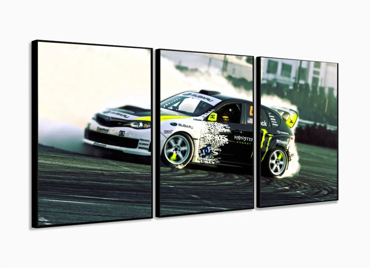 Quadros Decorativos Carros Monster 120x60 3 peças com moldura filete