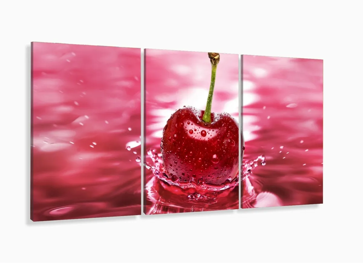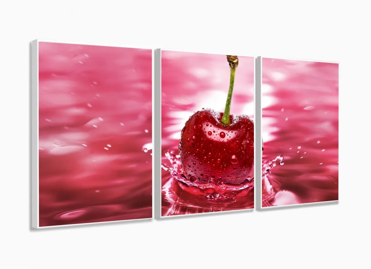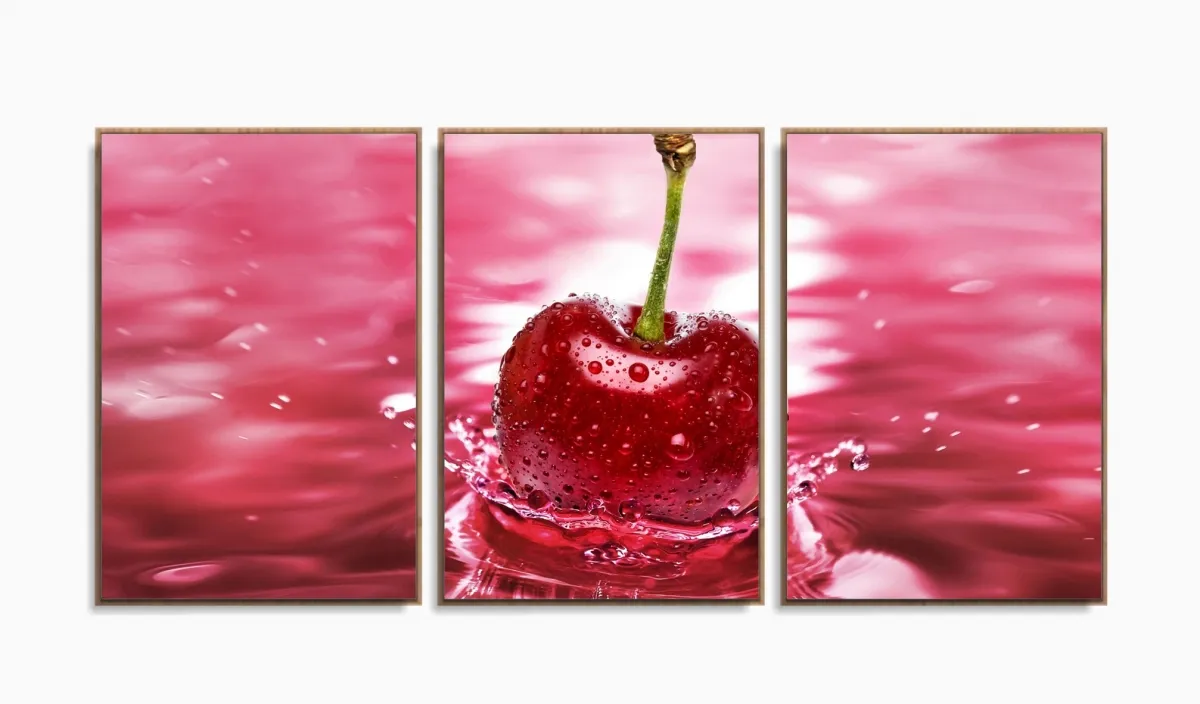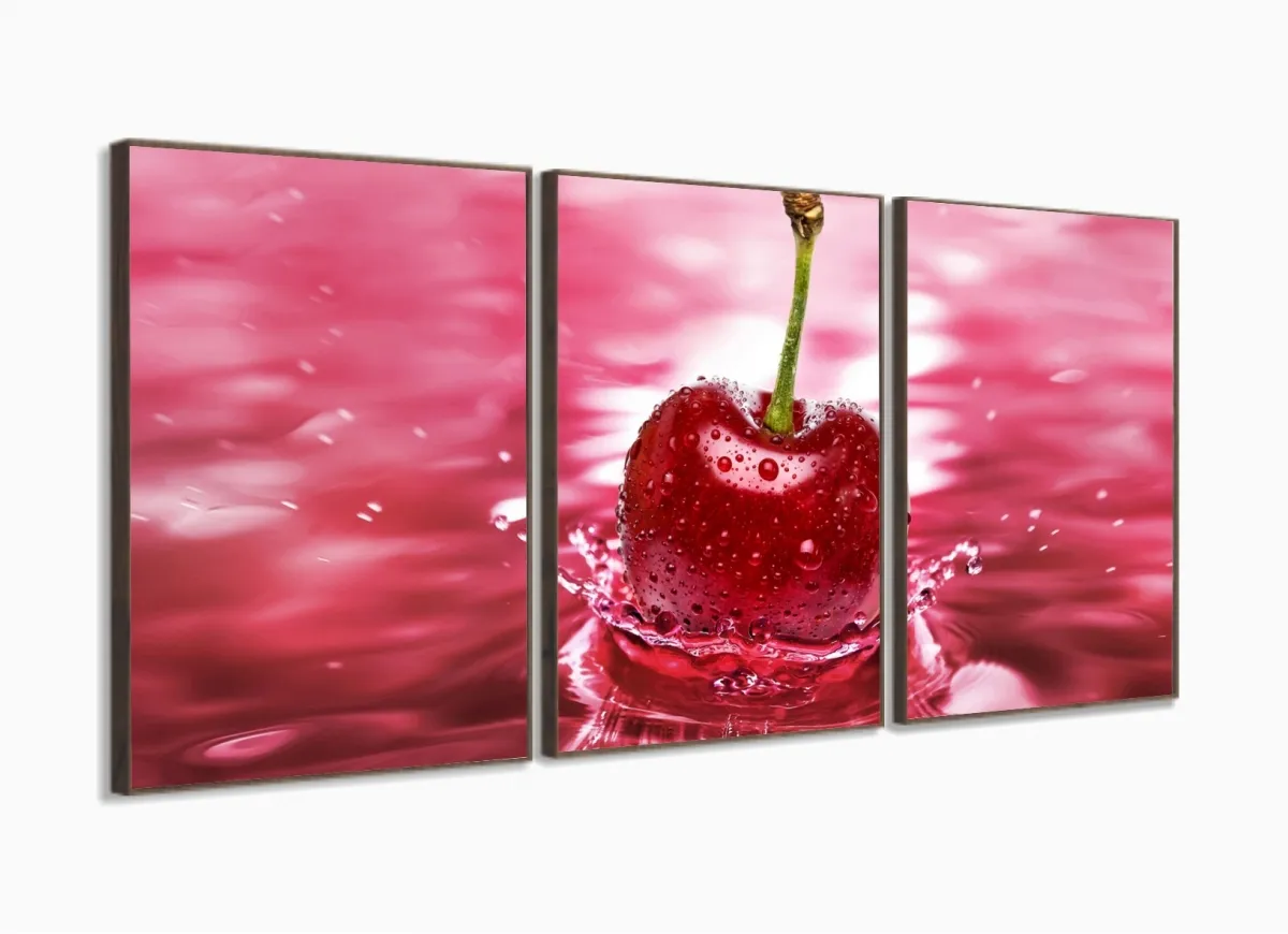 Quadros Decorativos Cozinha Cereja 120x60 3 peças com moldura filete