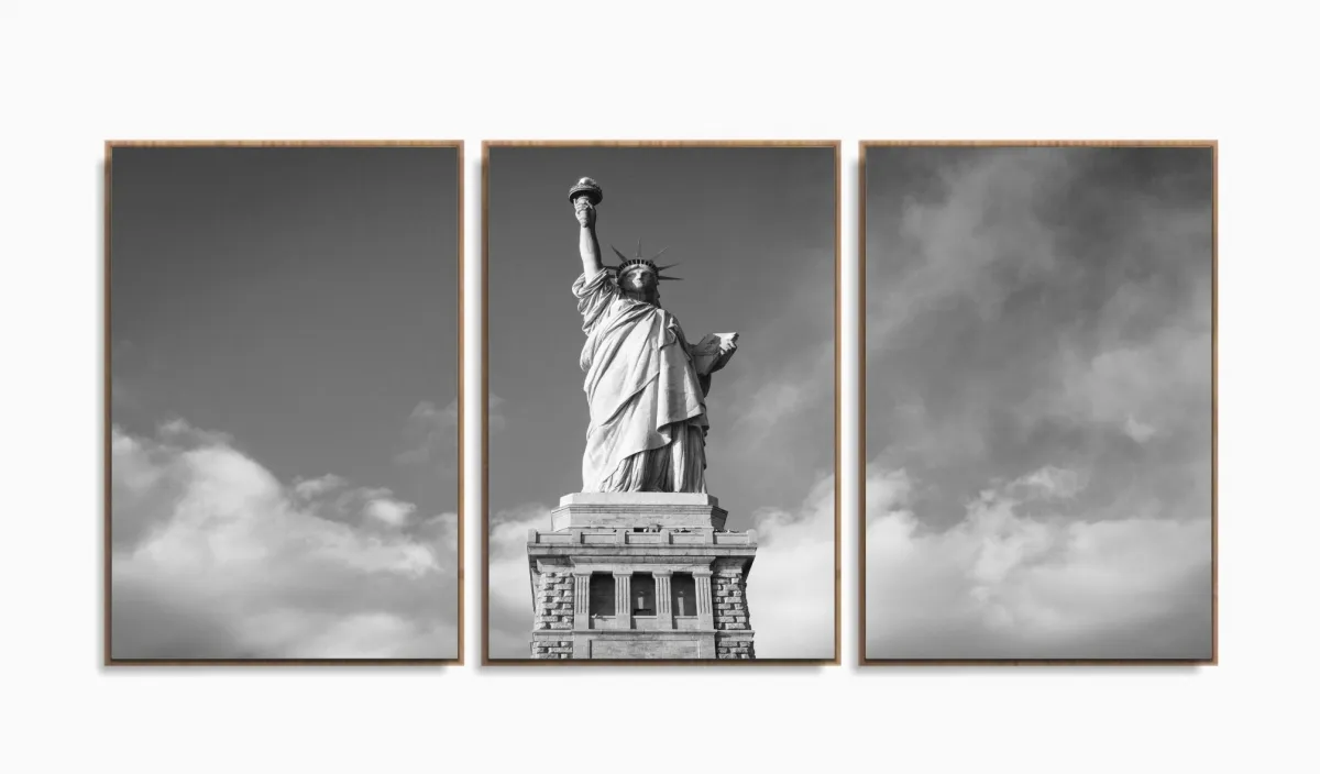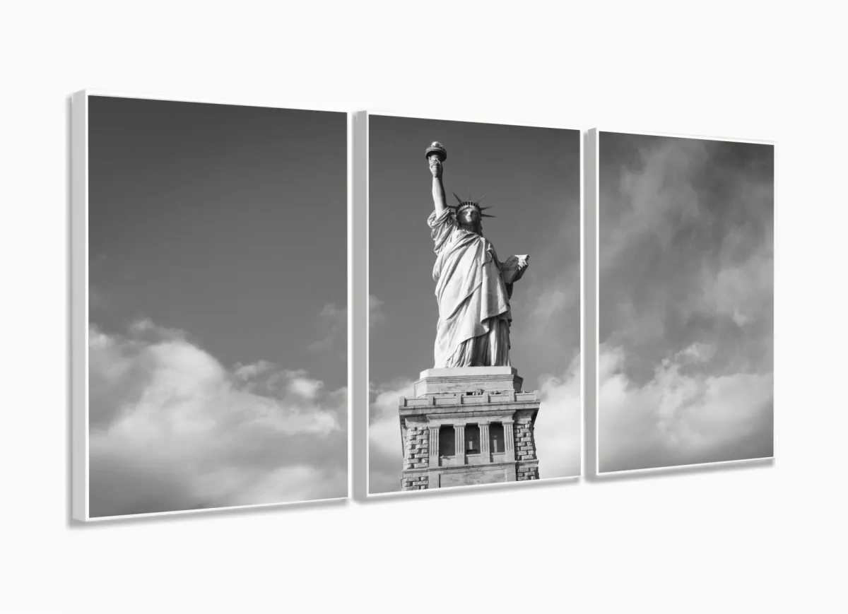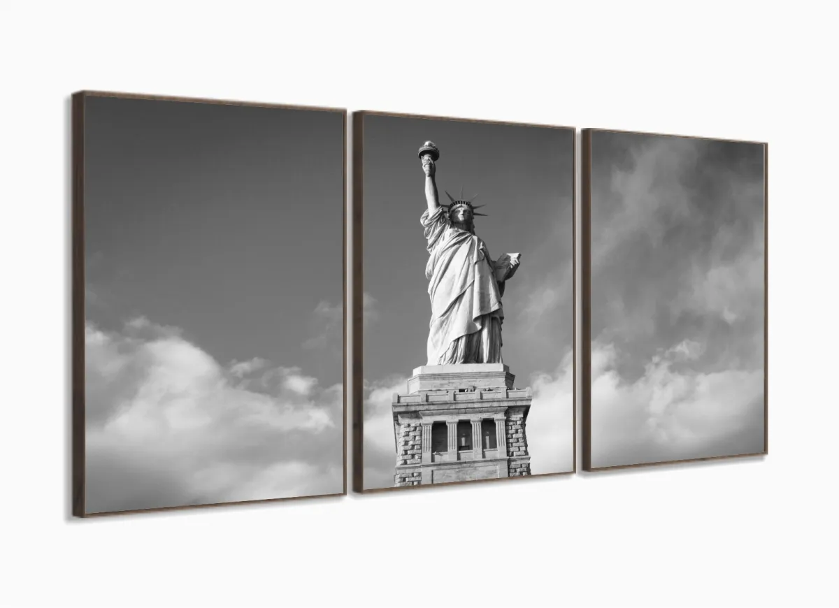 Quadros Decorativos Estatua Liberdade Preto Br. Sala com moldura filete