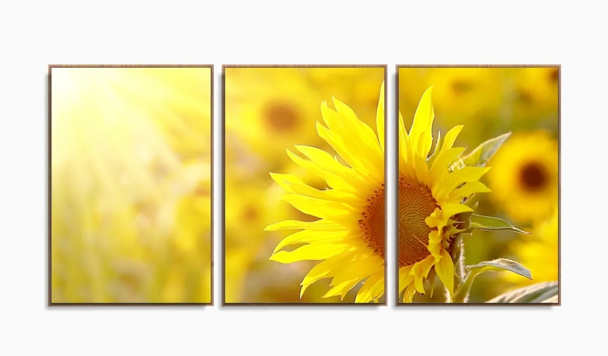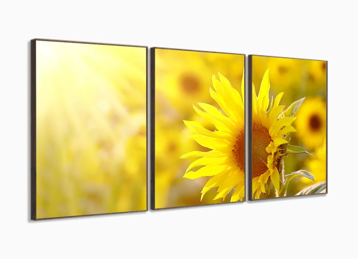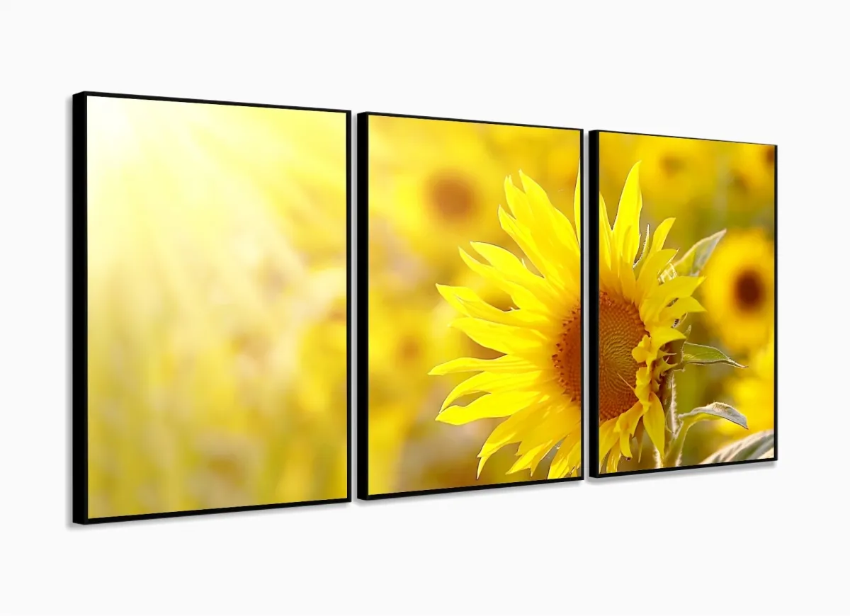 Quadros Decorativos Girassol Hd Quarto Sala Kit 120x60 3 peças com moldura filete