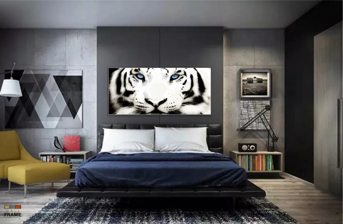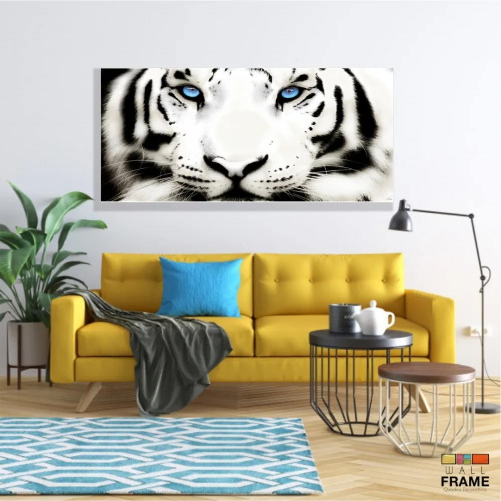 Quadros Decorativos Tigre Branco 120x60 em tecido canvas 130x60